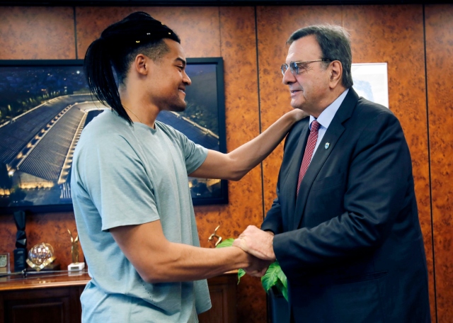 Ο Εμμανουήλ Καραλής, πρωταθλητής του άλματος επί κοντώ, συναντήθηκε με τον Πρόεδρο της Ελληνικής Ολυμπιακής Επιτροπής, Ισίδωρο Κούβελο, προκειμένου να τιμηθεί για την επιτυχία του στο Παγκόσμιο Πρωτάθλημα Κλειστού Στίβου που διεξήχθη στο Τόρουν της Πολωνίας.