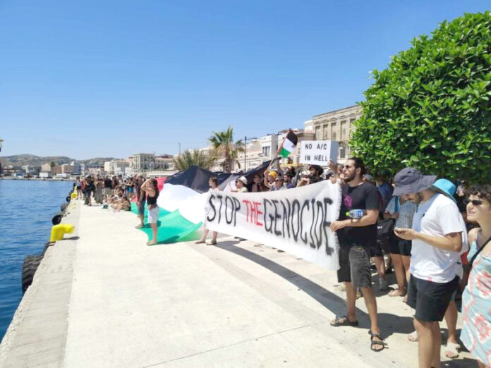 Λίγες εκατοντάδες «αγανακτισμένων» Συριανών – και πιθανώς κάποιων αλλοεθνών – απέκλεισαν το λιμάνι του νησιού, απαγορεύοντας σε κρουαζιερόπλοιο με Ισραηλίτες πολίτες να αποβιβαστούν εκεί.