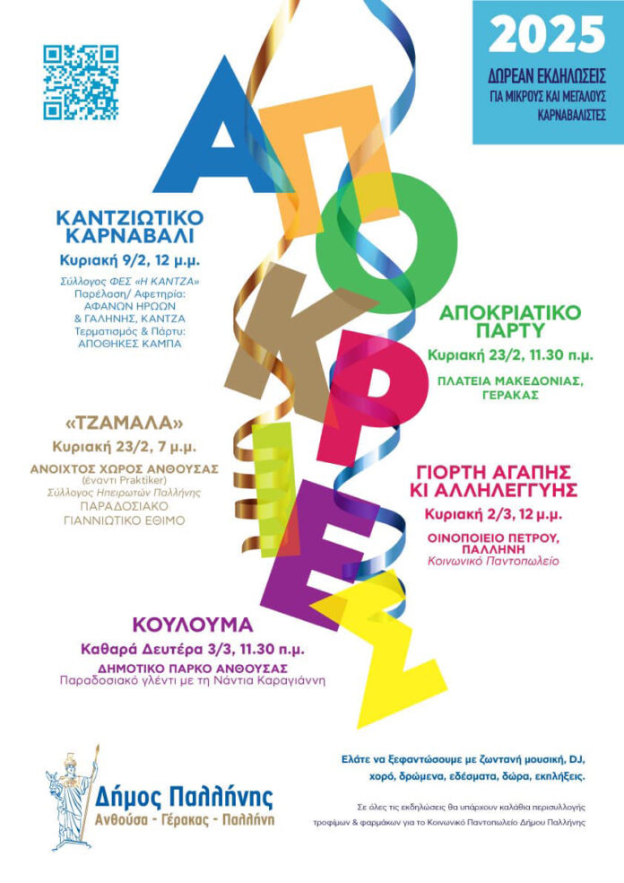 Ο Δήμος Αχαρνών προσκαλεί όλους να συμμετάσχουν στις αποκριάτικες εκδηλώσεις, δημιουργώντας μαζί αξέχαστες στιγμές χαράς και διασκέδασης.