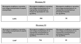Επιπροσθέτως, από τους αντίστοιχους Πίνακες VI (σελ. 9), προκύπτει ότι 4.237 συμβάσεις πλήρους απασχόλησης μετατράπηκαν σε μερική και σε εκ περιτροπής, ΜΟΝΟ κατά τον Ιούλιο 2024, ενώ 2.890 συμβάσεις πλήρους απασχόλησης μετατράπηκαν σε μερική και σε εκ περιτροπής κατά τον Αύγουστο 2024.