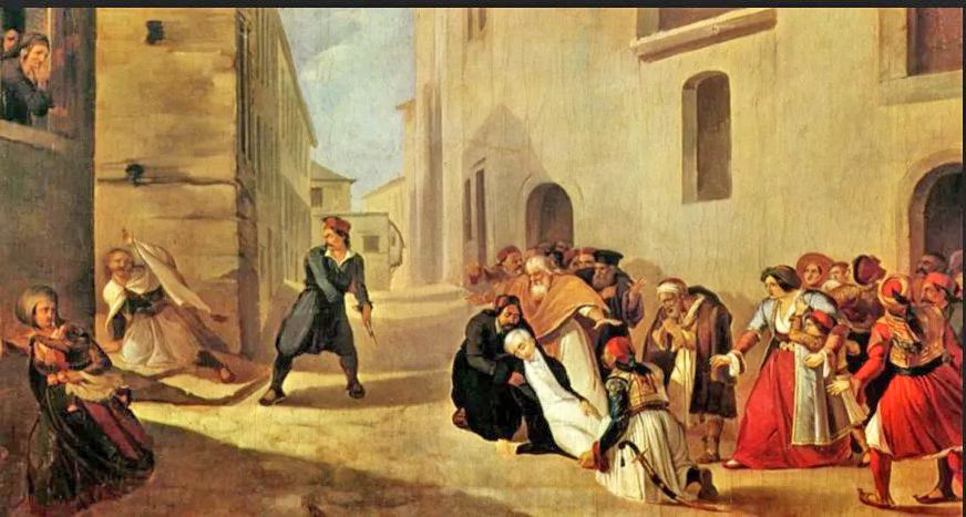 Την 06:35 της 27ης Σεπτεμβρίου 1831, στο Ναύπλιο, στην είσοδο της εκκλησίας του Αγ. Σπυρίδωνος, ο Κωνσταντίνος και Γεώργιος Μαυρομιχάλης δολοφόνησαν τον πρώτο κυβερνήτη της Ελλάδος Ιωάννη Καποδίστρια. Ο πρώτος ήταν αδελφός και ο δεύτερος υιός του Πετρόμπεη Μαυρομιχάλη.