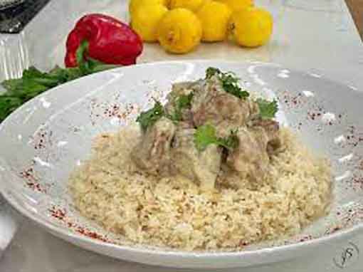 Όταν το φαγητό μας είναι έτοιμο, σε ένα μπολ βάζουμε το γιαούρτι και τη μουστάρδα και ανακατεύουμε με ένα σύρμα χειρός. Σβήνουμε την κατσαρόλα από τη φωτιά. Προσθέτουμε σιγά-σιγά τη σάλτσα (υγρά) που έχουμε στην κατσαρόλα στο μπολ με το γιαούρτι ανακατεύοντας συνεχώς, αυτό το κάνουμε για να μην μας κόψει το γιαούρτι. Έπειτα προσθέτουμε τη σάλτσα που έχει δημιουργηθεί στο μπολ στην κατσαρόλα. Προσθέτουμε το ξύσμα λεμόνι. Ψιλοκόβουμε λίγα φύλλα κόλιανδρου από πάνω.