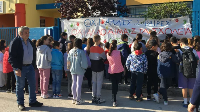 Διαμαρτυρία από γονείς έξω από το 20ο δημοτικό σχολείο