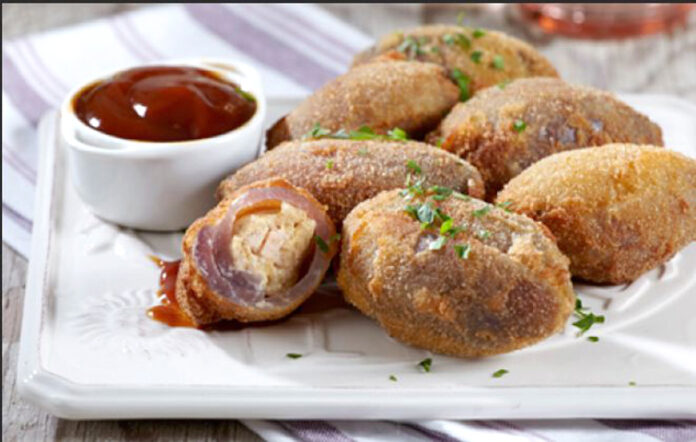 Σε ένα μπολ ανακατεύουμε το μπέικον και το τυρί κρέμα και αφήνουμε το μείγμα στο ψυγείο για 30΄.