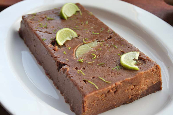 Κατόπιν βάζουμε τη φόρμα στο ψυγείο για να κρυώσει. Αναποδογυρίζουμε τη φόρμα σε ένα δίσκο και αφαιρούμε προσεχτικά το αντικολλητικό χαρτί.
