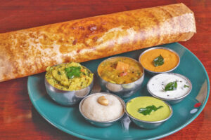 Στην Ινδία είναι απαραίτητη η δοκιμή της Dosa. Είναι μια τηγανίτα γεμιστή με οτιδήποτε, από τυρί μέχρι πικάντικα λαχανικά, ιδανική για μεσημεριανό ή βραδινό γεύμα.