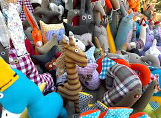 Δεύτερη ζωή με ραφές. Κουκλάκια από αναμνήσεις. Γάτες, σκύλοι, χήνες, χταπόδια, πετεινάρια, μικρά δεινοσαυράκια και χαμογελαστοί ελέφαντες, αστερίες, ιππόκαμποι και ψάρια. Παραμυθένιες μορφές ζώων από ριγέ, καρό και εμπριμέ υφάσματα μεταχειρισμένων ρούχων, που έχουν μια δεύτερη ευκαιρία και γεμίζουν με χρώμα την αγορά χειροτεχνών στο Θησείο. Όλες χειροποίητες, πάνινες κούκλες που δημιουργήθηκαν με αγάπη από τη Βούλα Κεσοπούλου και στόχο να συντροφεύουν μικρά και μεγάλα παιδιά.