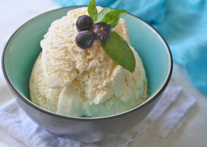 Ρίχνουμε το μείγμα μας σε ένα μεταλλικό μπολ παγωτού και το βάζουμε στην κατάψυξη για τουλάχιστον 12 ώρες. Δεν χρειάζεται να το ανακατέψετε ξανά, δεν θα δημιουργηθούν κρύσταλλοι.