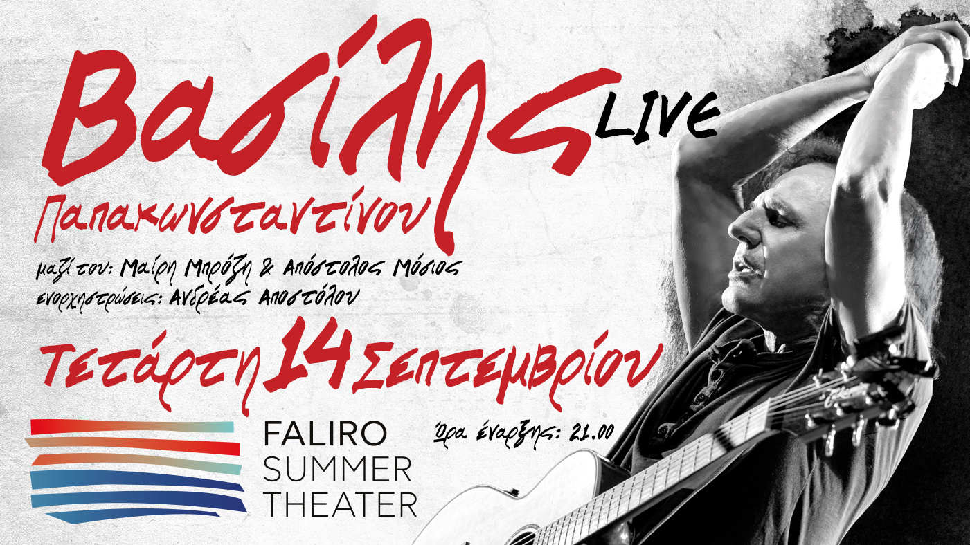 Την Τετάρτη 14 Σεπτεμβρίου ο Βασίλης Παπακωνσταντίνου θα μας χαρίσει μια μοναδική συναυλία στο Faliro Summer Theater. Θα βουτήξει για χάρη μας στην ατέλειωτη δισκογραφία του και θα διαλέξει να μας τραγουδήσει τα «διαμάντια», τα τραγούδια «σταθμούς» και όλα τα αγαπημένα του/μας.