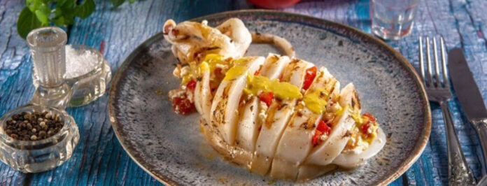 Σουπιές γεμιστές με φέτα και σάλτσα λεμονιού