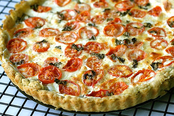 Αλείφετε την τάρτα με τον πολτό της ελιάς και τοποθετείτε από πάνω μια στρώση ντομάτες με τρόπο που θα μισοσκεπάζει η μία την άλλη, εναλλάσσοντας τις κόκκινες ντομάτες με πράσινες. Πασπαλίζετε με το μίγμα του τριμμένου τυριού και επαναλαμβάνετε με μια δεύτερη στρώση από ντομάτες. Περιχύνετε με το υπόλοιπο ελαιόλαδο, μοιράζετε στην επιφάνεια την κάππαρη και τις ελιές και πασπαλίζετε με το υπόλοιπο μίγμα του τυριού και τον ψιλοκομμένο μαϊντανό. Δυναμώνετε τη φωτιά και συνεχίζετε το ψήσιμο στους 200°C για 15 λεπτά ακόμη ή μέχρι να λιώσει το τυρί. Σερβίρετε την τάρτα σας χλιαρή ή και κρύα.