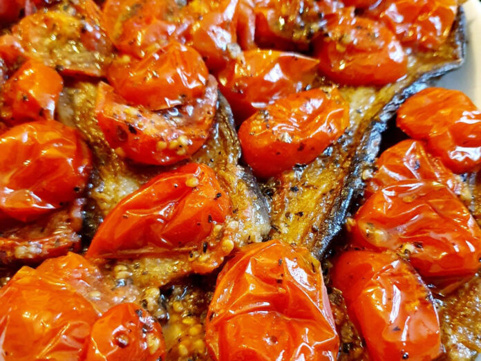Τις τηγανίζουμε σε καυτό ηλιέλαιο μέχρι να πάρουν ωραίο χρώμα. Τις βάζουμε σε ένα πιάτο με χαρτί κουζίνας για να φύγουν τα πολλά λάδια. Μόλις η σάλτσα είναι έτοιμη, βάζουμε τις μελιτζάνες σε ένα πιάτο και από πάνω τις περιχύνουμε με τα ντοματίνια.