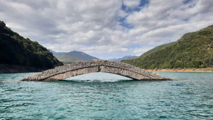 • Το μισοβυθισμένο γεφύρι στα νερά της λίμνης των Κρεμαστών στέκει εκεί στη θέση του πάνω από 360 χρόνια
