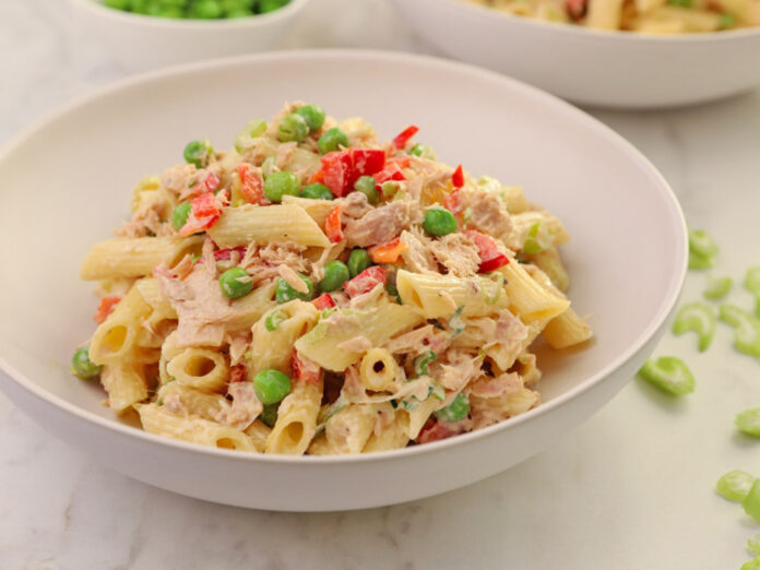 Προσθέτετε το κρεμμύδι και τη μαγιονέζα ανακατεύοντας καλά. Συμπληρώνετε με τον τόνο, ανακατεύοντας ελαφριά.